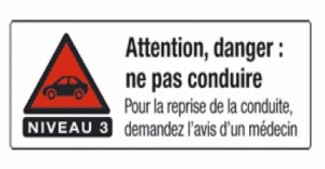 Certains médicaments peuvent avoir un retentissement sur les capacités de conduite de manières diverses : le plus souvent du fait d’une somnolence, mais aussi de modifications du comportement, de vertiges, de troubles de la coordination, de troubles de la vue… L ’Agence française de sécurité sanitaire des produits de santé (Afssaps) a notamment mis au point un système d’information des usagers sous forme de trois pictogrammes allant du niveau de risque 1 au niveau 3 ; ceci, sur la base des effets identifiés au cours des études expérimentales, cliniques et dans les données de pharmacovigilance.