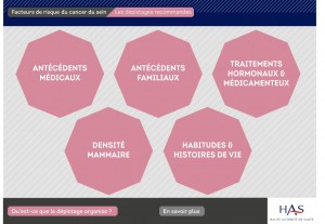 La HAS a retenu 7 facteurs de risque qui sont soit associés à une augmentation majeure du risque de survenue du cancer du sein, soit associés à une augmentation modérée voire modeste de ce risque mais liés à un mauvais pronostic du cancer.