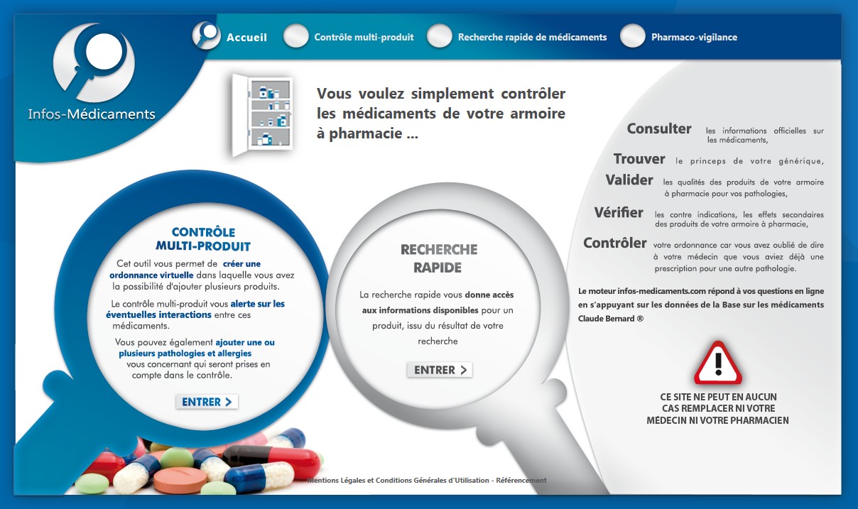 « Le site Infos-Medicaments.com n’a pas vocation à se substituer au médecin ou au pharmacien ; il vise à promouvoir la sécurité du patient en lui fournissant toute l’information nécessaire sur les médicaments, en l’alertant sur les éventuelles interactions médicamenteuses et en encourageant la pharmacovigilance », explique Cegedim dans un communiqué.