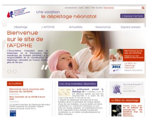 L’Association Française pour le Dépistage et la Prévention des Handicaps de l’Enfant (AFDPHE) vient de mettre en ligne une nouvelle version de son site internet. Une version qui se veut « plus simple, plus clair et plus complète, » et dont l’ambition est de répondre aux interrogations des familles, en complément de l’information délivrée en maternité avant le prélèvement sanguin du nouveau-né.