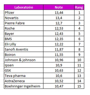 e-réputation des laboratoires pharmaceutiques: Pfizer, Novartis, Pierre Fabre et Roche en tête de classement