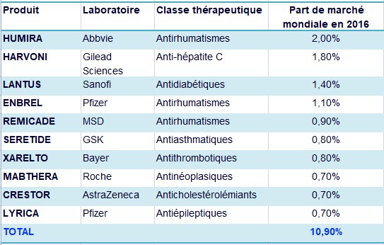 . Le Top 10 mondial des laboratoires pharmaceutiques en 2016