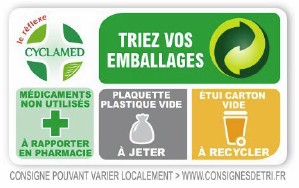 Une nouvelle signalétique sur les consignes de tri : l’Info-tri MédicamentsLe guide informe les entreprises du secteur de l’existence d’une nouvelle signalétique. Sur le modèle de l’Info-tri Point Vert apposé aujourd’hui sur plus de 3,5 milliards d’emballages et ce dans un grand nombre de secteurs d’activité, Adelphe, Cyclamed et le Leem ont développé un Info-tri Médicaments à apposer notamment sur leur notice. Cette signalétique apporte ainsi au consommateur/patient une information exhaustive puisqu’elle prend en compte les spécificités de la fin de vie des emballages de médicaments.