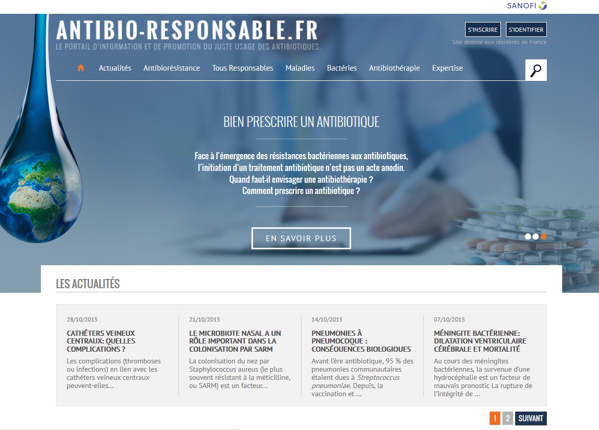 « Le site antibio-responsable.fr s’inscrit dans une démarche d’information pour une antibiothérapie responsable, et de services aux professionnels de santé » déclare le Dr Pascal Michon, directeur des Affaires Scientifiques, Sanofi France. « Si chacun partage cette même exigence d’une juste utilisation des antibiotiques, il sera alors possible d’améliorer la qualité de la prise en charge des patients, de réduire les consommations injustifiées d’antibiotiques et de ralentir le développement des résistances bactériennes. »
