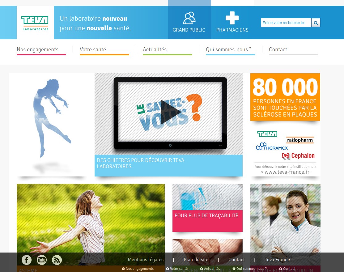 « Teva Laboratoires propose un site institutionnel conçu de manière très simple, qui prend en compte les besoins et demandes du grand public en matière d’information liée à la santé », explique le laboratoire dans un communiqué.